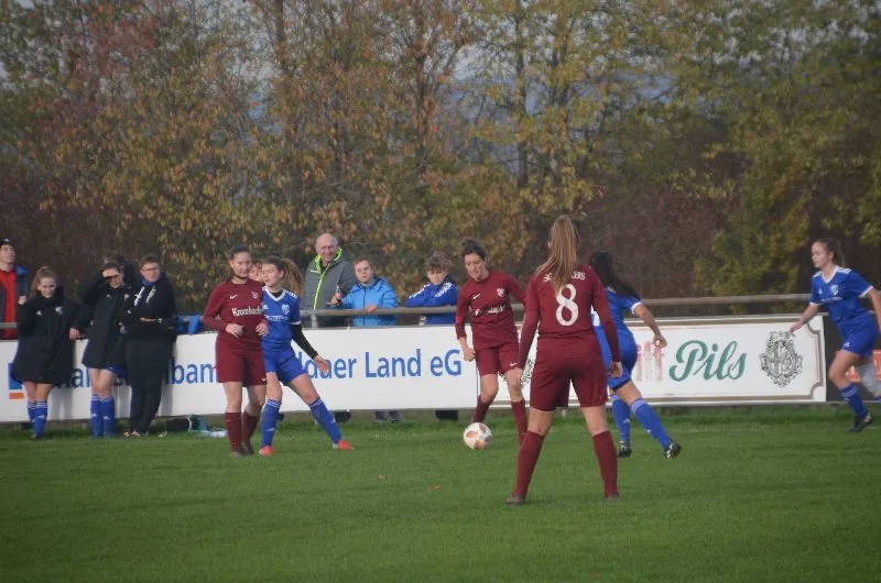 Unsere Frauen kamen im ersten Spiel der Rückrunde zu einem klaren Sieg und verbesserten sich dadurch hinter dem VFL Eiterfeld auf Platz 2 der Tabelle. Gegen die Verbandsligareserve aus dem „Blauen Eck“ bot die Mannschaft eine solide Vorstellung wobei der Sieg allerdings um einiges höher hätte ausfallen müssen. Zu kritisieren war nämlich wieder einmal wie so oft die mangelhafte Chancenverwertung, denn bereits in der Anfangsphase boten sich gute Möglichkeiten und es hätte früh 2:0 stehen müssen. So dauerte es bis zur 22. Minute als Saskia Schäfer eine Rückgabe einer Gästespielerin erlief und mit ihrem 6. Saisontor für die 1:0 Führung sorgte. Nur 3 Minuten später erhöhte Spielführerin Eileen Weber auf 2:0, indem sie mit einem souverän verwandelten Handelfmeter unserer ehemaligen Spielerin Joanna Forbes im Tor der Gäste keine Abwehrmöglichkeit ließ. Es dauerte dann jedoch wieder eine halbe Stunde bis wieder einmal eine Chance verwertet wurde. Marie Möller war es, die in ihrem 7. Saisonspiel bereits zu ihrem 9. Treffer kam und in der 55. Minute auf 3:0 erhöhte. Bis zum Endstand von 4:0 dauerte es dann bis zur 87. Minute. Dabei konnte Neuzugang Jasmin Braun einen gelungenen Einstand feiern. Eine flache Hereingabe von der rechten Seite durch Luisa Kreß schob sie gut 20 Minuten nach ihrer Einwechslung aus ca. 5 m Entfernung überlegt über die Linie. Da die mittlerweile in Veitsteinbach wohnhafte Jasmin Braun erst im September außerhalb der Wechselfrist vom TSV Poppenhausen zur SGR wechselte, musste sie eine 6 monatige Wechselsperre seit ihrem letzten Spiel absitzen, die erst am 08.11. abgelaufen war. Unsere Frauen blieben damit bisher in 5 von 8 Spielen ohne Gegentor und bleiben weiterhin ohne Niederlage. Bevor die Mannschaft in die Winterpause gehen kann steht am Samstag, den 26. November um 14:00 Uhr noch das Nachholspiel gegen den TSV Ilbeshausen auf dem Programm, wobei alles andere als ein Sieg eine Enttäuschung darstellen würde.