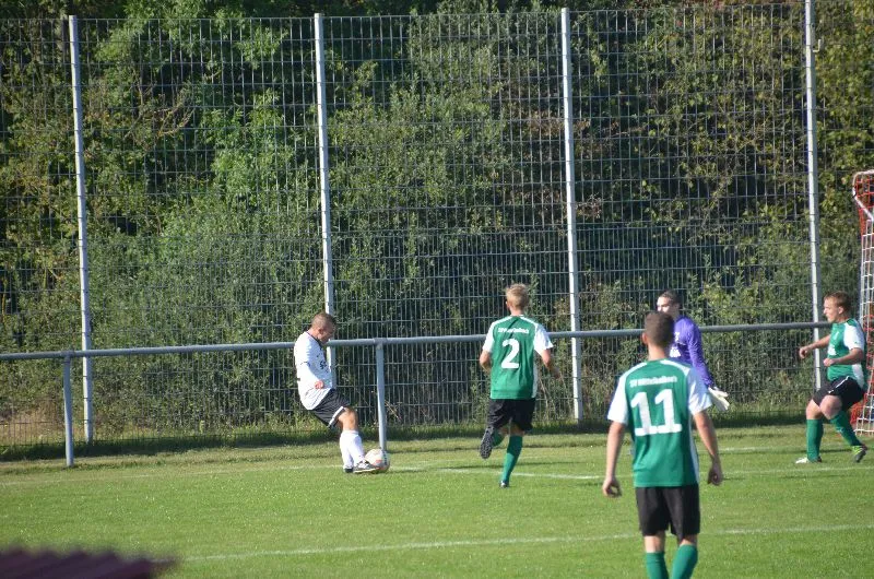 Bereits in der 8. Spielminute wurde SGR-Verteidiger Nikolai Förster von Schiedsrichter Bodusch aus Gersfeld mit der Roten Karte des Feldes verwiesen. Das Einsteigen war sicherlich grenzwertig, aber die Entscheidung dennoch sehr hart. Der Platzverweis schien unsere Mannschaft aber eher zu beflügeln, denn Einsatzwille und Kampfbereitschaft waren über die kompletten 90 Minuten vorbildlich. Die Mittelkalbacher enttäuschten auf ganzer Linie und die numerische Überlegenheit war zu keiner Zeit bemerkbar. Nach einem Traumpass von Florian Pankow auf den aufgerückten Libero Mirko Gerhard fiel kurz vor dem Pausenpfiff das Tor des Tages: Unser Spielertrainer nahm den Flachpass in halblinker Position auf und ließ dem Torhüter mit einem Schuss in die lange Ecke keine Abwehrchance.