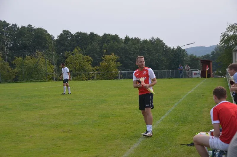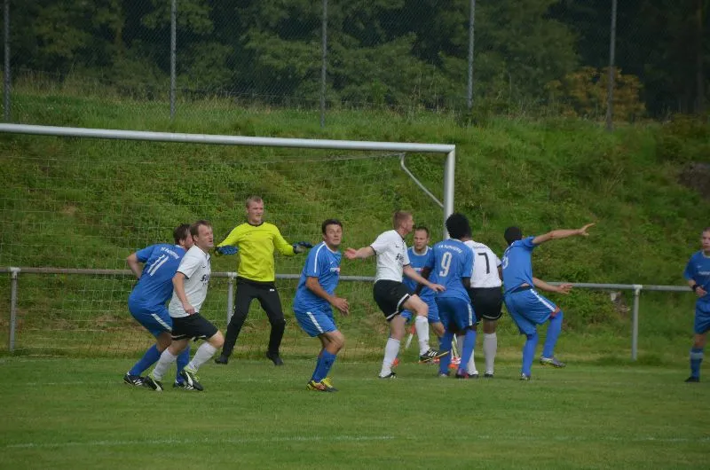 Die knapp vierstündige Wartezeit merkte man beiden Teams im ersten Durchgang deutlich an. Auf beiden Seiten lief wenig zusammen, die Gastgeber beschränkten sich auf die Defensive und die SGR-Offensive kam noch nicht in Schwung. Kapitän Steffen Frick brachte seine Farben nach einer Flanke von Christian Heil mit 1:0 in Führung, die zur Pause durchaus verdient war.