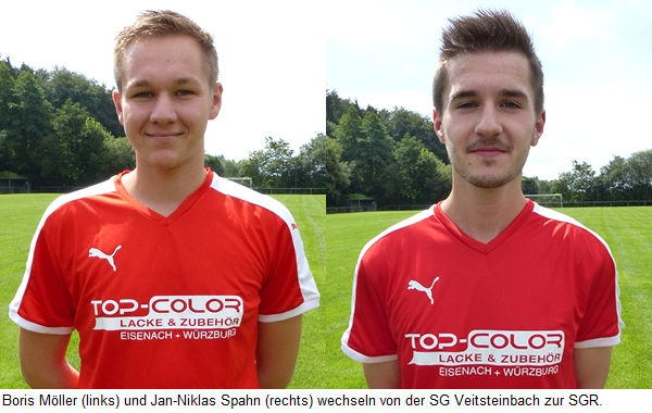Vom A-Ligisten SG Veitsteinbach wechseln der 20-jährige Jan-Niklas Spahn sowie der 23-jährige Boris Möller (Fotos links, Quelle der Fotos: www.torgranate.de) zur SG Rückers. Jan-Niklas Spahn spielte bereits die komplette Jugend in Rückers und kehrt nach 3 Jahren in Veitsteinbach nun wieder zu seinem Heimatverein zurück. SGR-Abteilungsleiter Fußball Michael Förster ist froh über die Verpflichtung der beiden Mittelfeldspieler: „Das sind zwei gute und ehrgeizige Fußballer, die zu den Leistungsträgern in Veitsteinbach gehörten und uns noch mehr Optionen geben werden.“
